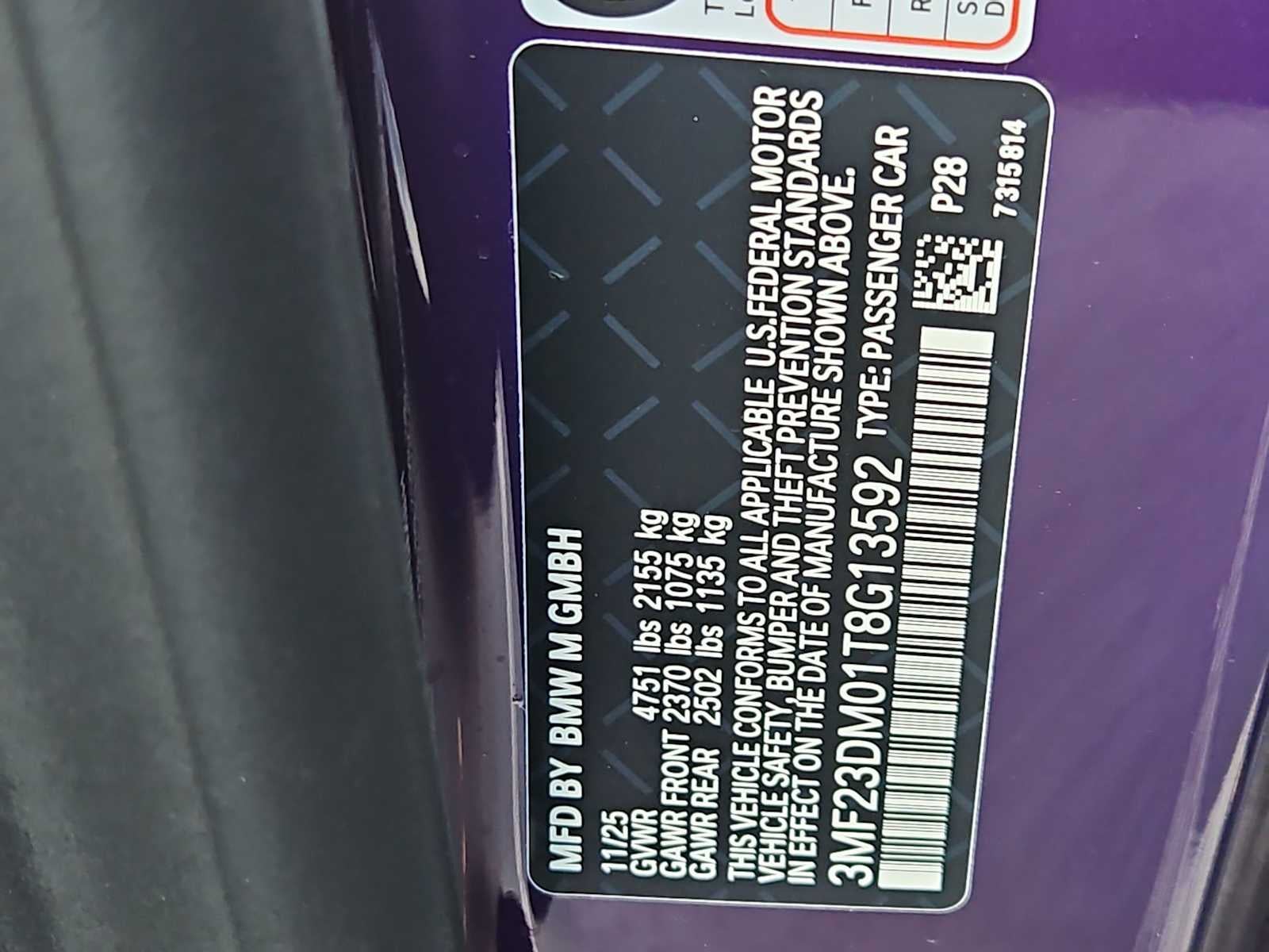 Connected Package Pro Limited Term, Lighting Package (Adaptive Full LED Lights and Automatic High Beams), 16 Speakers, 4-Wheel Disc Brakes, ABS brakes, Adaptive suspension, Air Conditioning, Alloy wheels, AM/FM radio: SiriusXM with 360L, AM/FM Stereo, Apple CarPlay and Android Auto Compatibility, Auto-dimming door mirrors, Auto-dimming Rear-View mirror, Automatic temperature control, BMW Assist ECall, BMW TeleServices, Brake assist, Bumpers: body-color, Carbon Fiber Trim, ConnectedDrive Services, Delay-off headlights, Driver door bin, Driver vanity mirror, Dual front impact airbags, Dual front side impact airbags, Electronic Stability Control, Emergency communication system: BMW Assist eCall, Exterior Parking Camera Rear, Four wheel independent suspension, Front anti-roll bar, Front Bucket Seats, Front Center Armrest, Front dual zone A/C, Front reading lights, Fully automatic headlights, Garage door transmitter, Hands-Free Bluetooth® and USB Audio Connection, Harman/Kardon Surround Sound System, harman/kardon® Speakers, Head restraints memory, Heated door mirrors, Heated Front Seats, Heated front seats, Heated Steering Wheel, Illuminated entry, Knee airbag, Leather Shift Knob, Leather steering wheel, Live Cockpit Pro with Head-Up Display, Low tire pressure warning, Lumbar Support, M Alcantara Steering Wheel, M Carbon Roof, M Compound Brakes with Red Calipers, M Shadowline Lights, M Sport Seats, Memory seat, Navigation, Navigation System, Occupant sensing airbag, Outside temperature display, Overhead airbag, Panic alarm, Parking Assistant, Passenger door bin, Passenger vanity mirror, Personal ESIM 5G, Power adjustable front head restraints, Power door mirrors, Power driver seat, Power Front Seats, Power moonroof, Power passenger seat, Power steering, Power windows, Radio data system, Rain sensing wipers, Rear air conditioning, Rear anti-roll bar, Rear seat center armrest, Rear window defroster, Remote keyless entry, Security system, SiriusXM with 360L, Special Order Color, Speed control, Speed-sensing steering, Speed-Sensitive Wipers, Split folding rear seat, Spoiler, Sport steering wheel, Steering wheel mounted audio controls, Tachometer, Telescoping steering wheel, Tilt steering wheel, Traction control, Trip computer, Turn signal indicator mirrors, Variably intermittent wipers, Vernasca Leather Upholstery, Wheels: 19 x 9.5 Front and 20 x 10.5 Rear Bicolor, Wheels: 19 x 9.5 Front and 20 x 10.5 Rear Silver, Widescreen Display, and Wireless Device Charging.