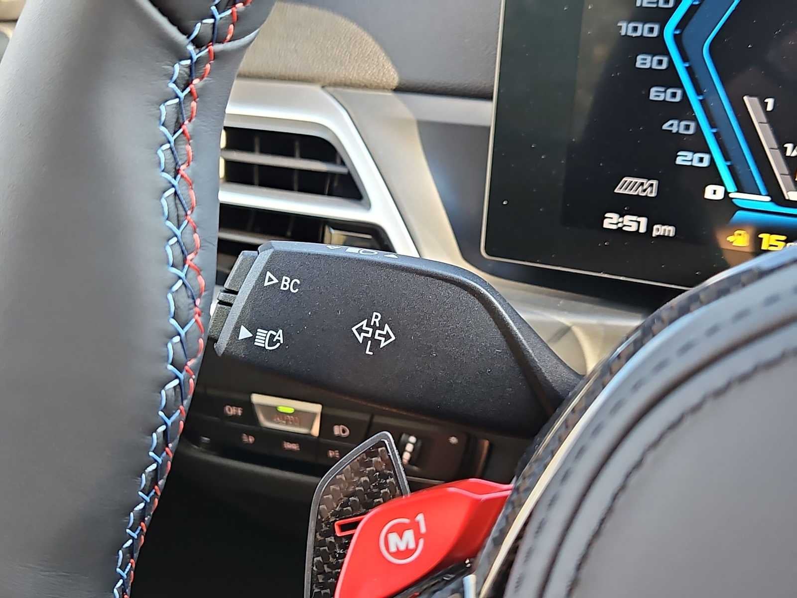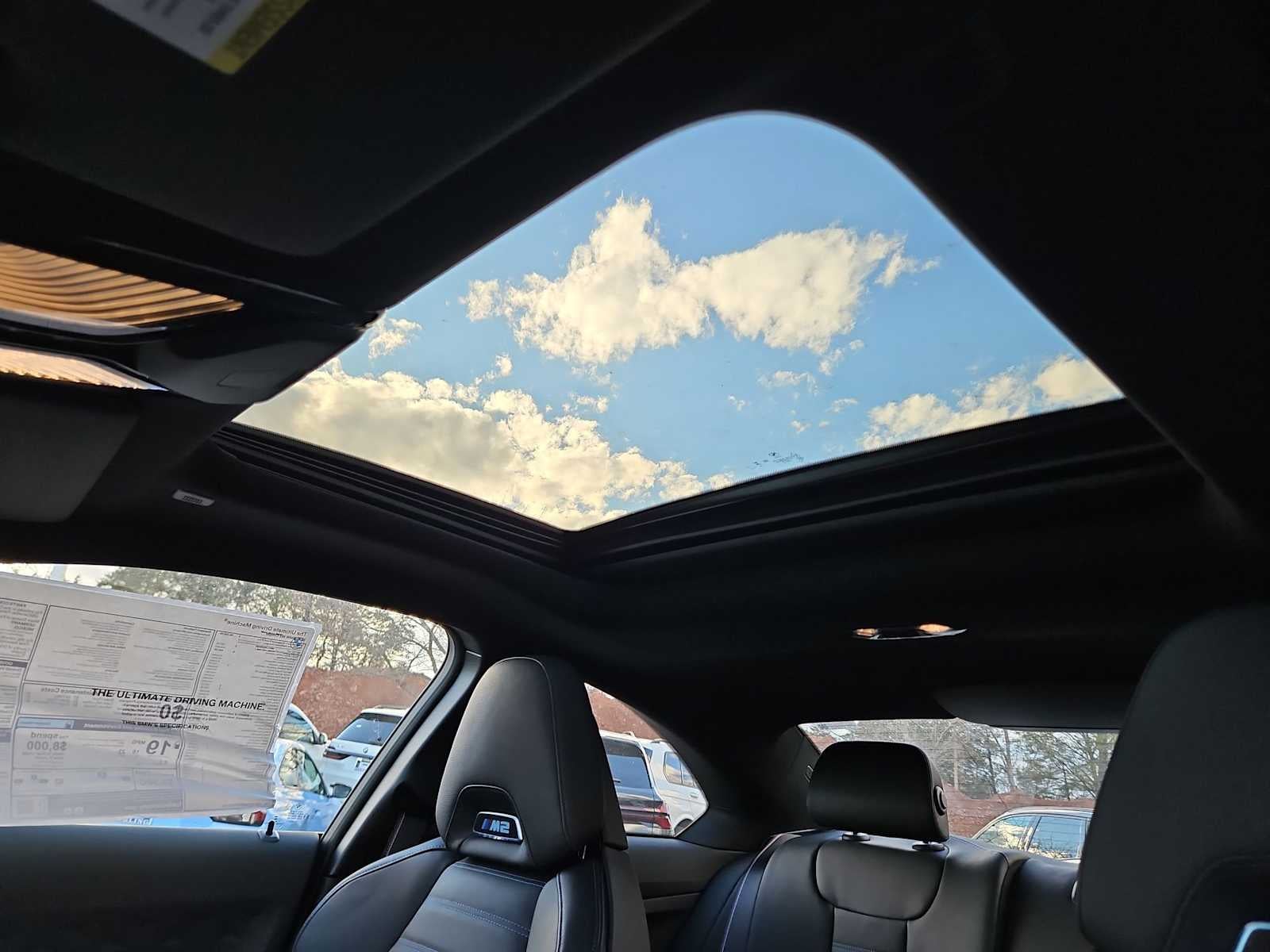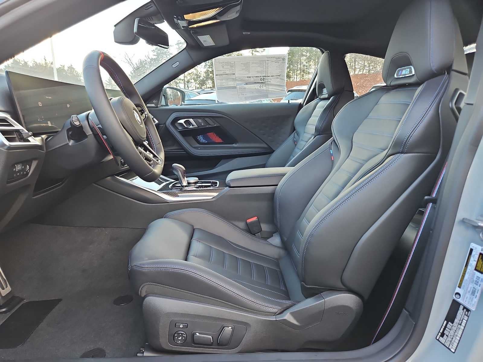 Connected Package Pro Limited Term, Lighting Package (Adaptive Full LED Lights and Automatic High Beams), 16 Speakers, 4-Wheel Disc Brakes, ABS brakes, Adaptive suspension, Air Conditioning, Alloy wheels, AM/FM radio: SiriusXM with 360L, AM/FM Stereo, Apple CarPlay and Android Auto Compatibility, Auto-dimming door mirrors, Auto-dimming Rear-View mirror, Automatic temperature control, BMW Assist ECall, BMW TeleServices, Brake assist, Bumpers: body-color, Carbon Fiber Trim, ConnectedDrive Services, Delay-off headlights, Driver door bin, Driver vanity mirror, Dual front impact airbags, Dual front side impact airbags, Electronic Stability Control, Emergency communication system: BMW Assist eCall, Exterior Parking Camera Rear, Four wheel independent suspension, Front anti-roll bar, Front Bucket Seats, Front Center Armrest, Front dual zone A/C, Front reading lights, Fully automatic headlights, Garage door transmitter, Hands-Free Bluetooth® and USB Audio Connection, Harman/Kardon Surround Sound System, harman/kardon® Speakers, Head restraints memory, Heated door mirrors, Heated Front Seats, Heated front seats, Heated Steering Wheel, Illuminated entry, Knee airbag, Leather Shift Knob, Leather steering wheel, Live Cockpit Pro with Head-Up Display, Low tire pressure warning, Lumbar Support, M Shadowline Lights, M Sport Seats, Memory seat, Navigation, Navigation System, Occupant sensing airbag, Outside temperature display, Overhead airbag, Panic alarm, Parking Assistant, Passenger door bin, Passenger vanity mirror, Personal ESIM 5G, Power adjustable front head restraints, Power door mirrors, Power driver seat, Power Front Seats, Power moonroof, Power passenger seat, Power steering, Power windows, Radio data system, Rain sensing wipers, Rear air conditioning, Rear anti-roll bar, Rear seat center armrest, Rear window defroster, Remote Engine Start, Remote keyless entry, Security system, SiriusXM with 360L, Speed control, Speed-sensing steering, Speed-Sensitive Wipers, Split folding rear seat, Spoiler, Sport steering wheel, Steering wheel mounted audio controls, Tachometer, Telescoping steering wheel, Tilt steering wheel, Traction control, Trip computer, Turn signal indicator mirrors, Variably intermittent wipers, Vernasca Leather Upholstery, Wheels: 19 x 9.5 Front and 20 x 10.5 Rear Bicolor, and Widescreen Display.