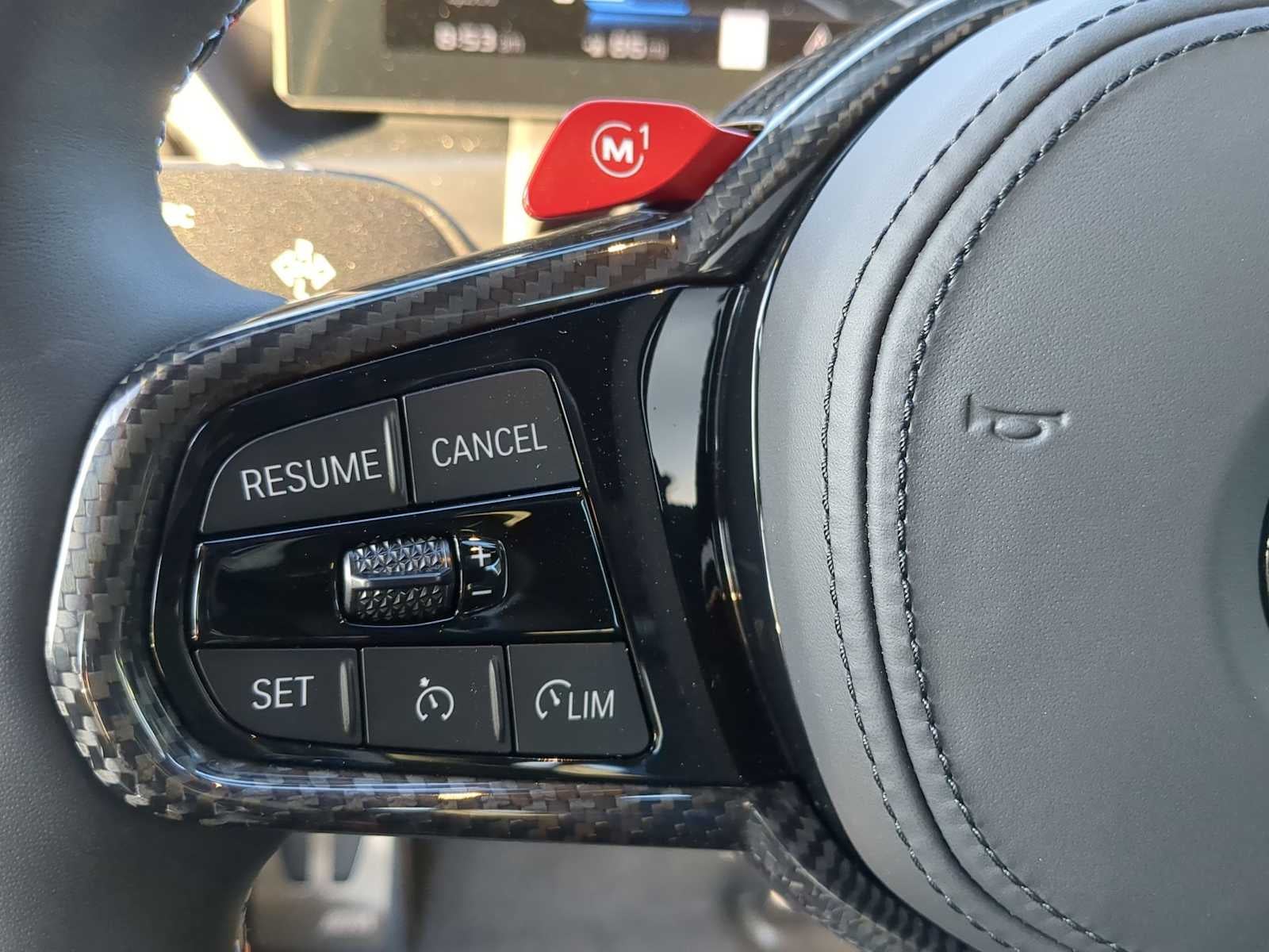 Connected Package Pro Limited Term, Lighting Package (Adaptive Full LED Lights and Automatic High Beams), 16 Speakers, 4-Wheel Disc Brakes, ABS brakes, Adaptive suspension, Air Conditioning, Alloy wheels, AM/FM radio: SiriusXM with 360L, AM/FM Stereo, Apple CarPlay and Android Auto Compatibility, Auto-dimming door mirrors, Auto-dimming Rear-View mirror, Automatic temperature control, BMW Assist ECall, BMW TeleServices, Brake assist, Bumpers: body-color, Carbon Fiber Trim, ConnectedDrive Services, Delay-off headlights, Driver door bin, Driver vanity mirror, Dual front impact airbags, Dual front side impact airbags, Electronic Stability Control, Emergency communication system: BMW Assist eCall, Exterior Parking Camera Rear, Four wheel independent suspension, Front anti-roll bar, Front Bucket Seats, Front Center Armrest, Front dual zone A/C, Front reading lights, Fully automatic headlights, Garage door transmitter, Hands-Free Bluetooth® and USB Audio Connection, Harman/Kardon Surround Sound System, harman/kardon® Speakers, Head restraints memory, Heated door mirrors, Heated Front Seats, Heated front seats, Heated Steering Wheel, Illuminated entry, Knee airbag, Leather Shift Knob, Leather steering wheel, Live Cockpit Pro with Head-Up Display, Low tire pressure warning, Lumbar Support, M Carbon Roof, M Compound Brakes with Red Calipers, M Shadowline Lights, M Sport Seats, Memory seat, Navigation, Navigation System, Occupant sensing airbag, Outside temperature display, Overhead airbag, Panic alarm, Passenger door bin, Passenger vanity mirror, Personal ESIM 5G, Power adjustable front head restraints, Power door mirrors, Power driver seat, Power Front Seats, Power moonroof, Power passenger seat, Power steering, Power windows, Radio data system, Rain sensing wipers, Rear air conditioning, Rear anti-roll bar, Rear seat center armrest, Rear window defroster, Remote keyless entry, Security system, SiriusXM with 360L, Speed control, Speed-sensing steering, Speed-Sensitive Wipers, Split folding rear seat, Spoiler, Sport steering wheel, Steering wheel mounted audio controls, Tachometer, Telescoping steering wheel, Tilt steering wheel, Traction control, Trip computer, Turn signal indicator mirrors, Variably intermittent wipers, Vernasca Leather Upholstery, Wheels: 19 x 9.5 Front and 20 x 10.5 Rear Bicolor, Wheels: 19 x 9.5 Front and 20 x 10.5 Rear Silver, Widescreen Display, and Wireless Device Charging.