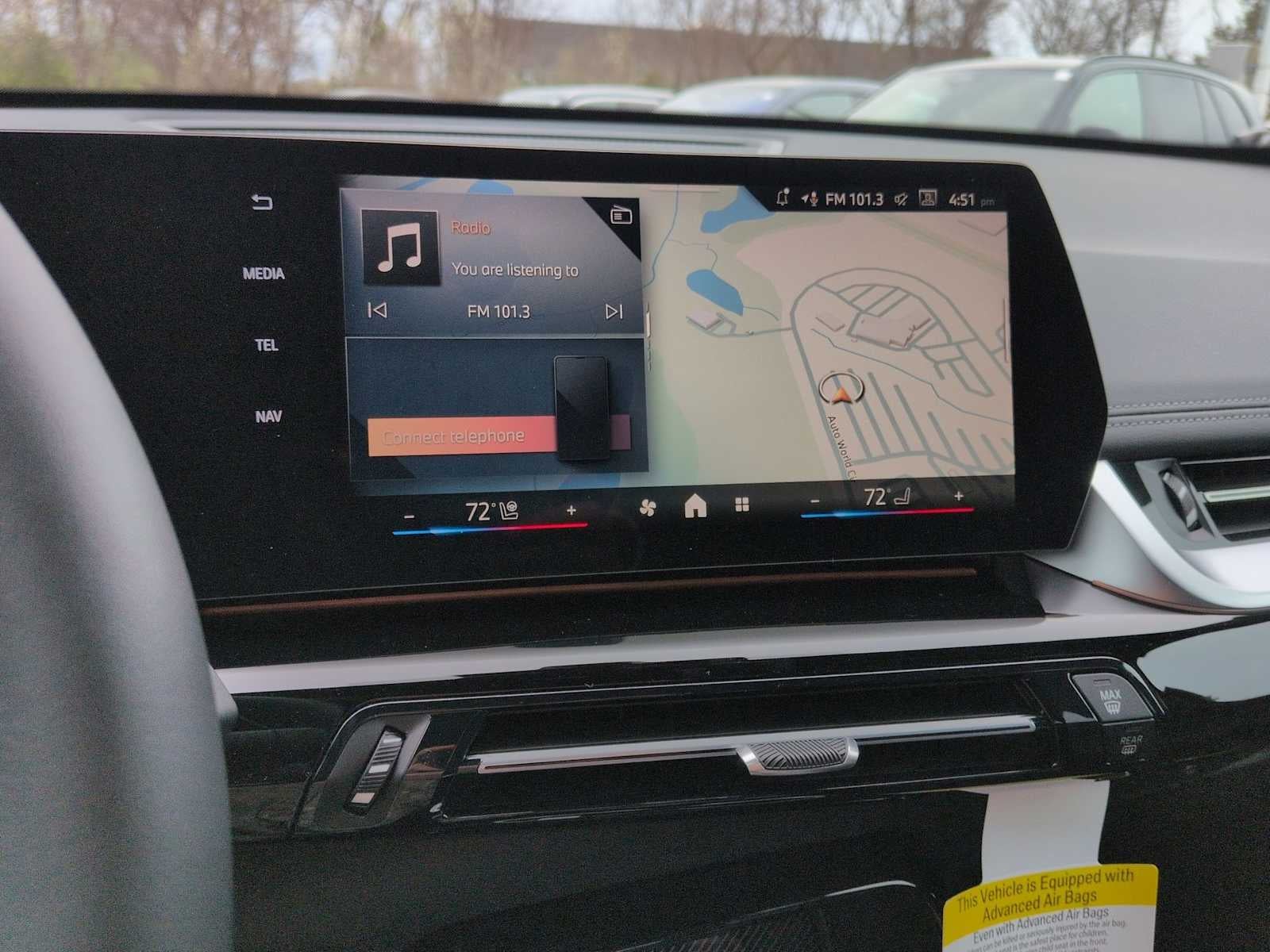 Convenience Package (Heated Steering Wheel, Panoramic Moonroof, and Remote Engine Start), 4-Wheel Disc Brakes, 7 Speakers, ABS brakes, Air Conditioning, Alloy wheels, AM/FM Radio, AM/FM radio: SiriusXM with 360L, Apple CarPlay and Android Auto Compatibility, Apple CarPlay Compatibility, Auto High-beam Headlights, Auto-dimming door mirrors, Auto-dimming Rear-View mirror, Automatic temperature control, BMW Assist ECall, BMW TeleServices, Brake assist, Bumpers: body-color, Compass, Delay-off headlights, Driver door bin, Driver vanity mirror, Dual front impact airbags, Dual front side impact airbags, Electronic Stability Control, Emergency communication system: BMW Assist eCall, Exterior Parking Camera Rear, Four wheel independent suspension, Front anti-roll bar, Front Bucket Seats, Front Center Armrest w/Storage, Front dual zone A/C, Front reading lights, Harman/Kardon Premium Sound System, Heated door mirrors, Heated Front Seats, Heated front seats, Illuminated entry, Knee airbag, Leather steering wheel, Low tire pressure warning, Memory seat, Navigation, Navigation System, Occupant sensing airbag, Outside temperature display, Overhead airbag, Overhead console, Panic alarm, Passenger door bin, Passenger vanity mirror, Perforated Veganza Upholstery, Personal ESIM 5G, Power door mirrors, Power driver seat, Power Front Seats, Power Liftgate, Power passenger seat, Power steering, Power windows, Radio data system, Rain sensing wipers, Rear anti-roll bar, Rear reading lights, Rear seat center armrest, Rear window defroster, Rear window wiper, Remote keyless entry, Security system, SiriusXM with 360L and 1 Year Trial Subscription, Speed control, Speed-sensing steering, Speed-Sensitive Wipers, Split folding rear seat, Spoiler, Steering wheel mounted audio controls, Tachometer, Telescoping steering wheel, Tilt steering wheel, Traction control, Trip computer, Turn signal indicator mirrors, Universal Garage-Door Opener, Variably intermittent wipers, Wheels: 18 x 7.5 V-Spoke Bi-Color, Wheels: 19 x 8.0 Y-Spoke, Widescreen Display, and Wireless Device Charging.