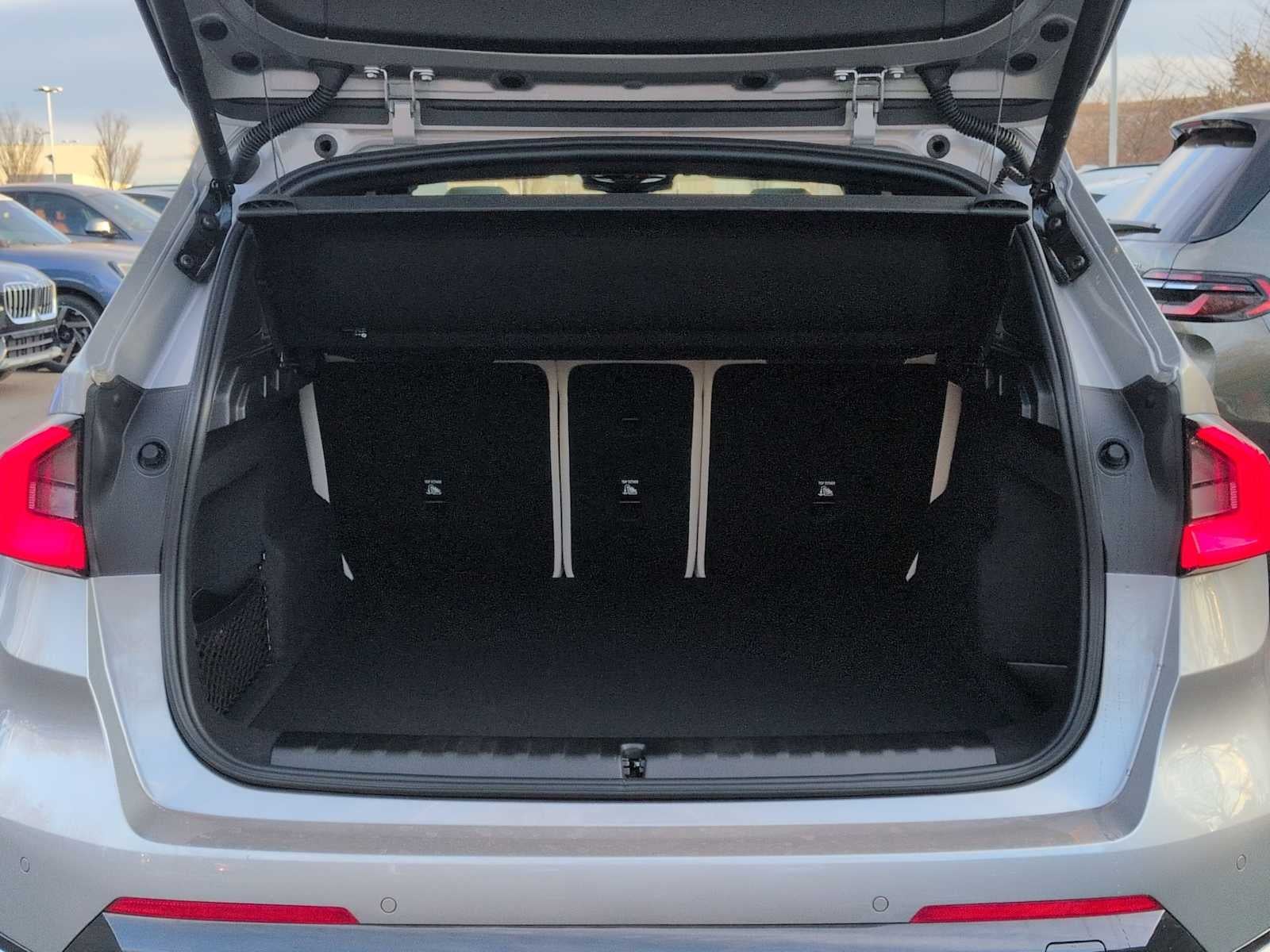 Technology Package (Anti-Theft Recorder, Head-Up Display, Heated Steering Wheel, Live Cockpit Pro, Panoramic Moonroof, Parking Assistant Plus, Parking View with 3D View (Surround View), Premium Content 1, and Remote Engine Start), 4-Wheel Disc Brakes, 7 Speakers, ABS brakes, Active Front Seats with Lumbar Support, Air Conditioning, Alloy wheels, AM/FM Radio, AM/FM radio: SiriusXM with 360L, Apple CarPlay and Android Auto Compatibility, Apple CarPlay Compatibility, Auto High-beam Headlights, Auto-dimming door mirrors, Auto-dimming Rear-View mirror, Automatic temperature control, BMW Assist ECall, BMW TeleServices, Brake assist, Bumpers: body-color, Compass, Delay-off headlights, Driver door bin, Driver vanity mirror, Dual front impact airbags, Dual front side impact airbags, Electronic Stability Control, Emergency communication system: BMW Assist eCall, Exterior Parking Camera Rear, Four wheel independent suspension, Front anti-roll bar, Front Bucket Seats, Front Center Armrest w/Storage, Front dual zone A/C, Front reading lights, Harman/Kardon Premium Sound System, Heated door mirrors, Heated Front Seats, Heated front seats, Illuminated entry, Knee airbag, Leather steering wheel, Low tire pressure warning, Memory seat, Navigation, Navigation System, Occupant sensing airbag, Outside temperature display, Overhead airbag, Overhead console, Panic alarm, Passenger door bin, Passenger vanity mirror, Perforated Veganza Upholstery, Personal ESIM 5G, Power door mirrors, Power driver seat, Power Front Seats, Power Liftgate, Power passenger seat, Power steering, Power windows, Radio data system, Rain sensing wipers, Rear anti-roll bar, Rear reading lights, Rear seat center armrest, Rear window defroster, Rear window wiper, Remote keyless entry, Security system, SiriusXM with 360L and 1 Year Trial Subscription, Speed control, Speed-sensing steering, Speed-Sensitive Wipers, Split folding rear seat, Spoiler, Sport Seats, Steering wheel mounted audio controls, Tachometer, Telescoping steering wheel, Tilt steering wheel, Traction control, Trip computer, Turn signal indicator mirrors, Universal Garage-Door Opener, Variably intermittent wipers, Wheels: 18 x 7.5 V-Spoke Bi-Color, Wheels: 19 x 8.0 Y-Spoke, Widescreen Display, and Wireless Device Charging.