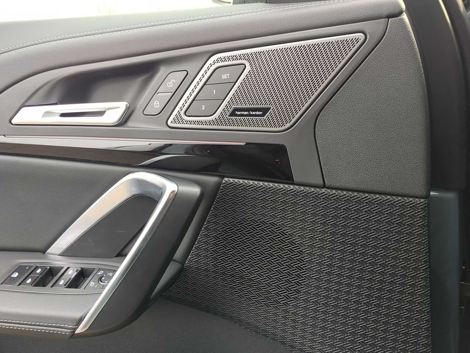 Driving Assistance Plus Package (Distance Control (ACC) with Steering Assistant and Driving Assistance Plus), Technology Package (Anti-Theft Recorder, Head-Up Display, Heated Steering Wheel, Live Cockpit Pro, Panoramic Moonroof, Parking Assistant Plus, Parking View with 3D View (Surround View), Premium Content 1, and Remote Engine Start), 4-Wheel Disc Brakes, 7 Speakers, ABS brakes, Air Conditioning, Alloy wheels, AM/FM Radio, AM/FM radio: SiriusXM with 360L, Apple CarPlay and Android Auto Compatibility, Apple CarPlay Compatibility, Auto High-beam Headlights, Auto-dimming door mirrors, Auto-dimming Rear-View mirror, Automatic temperature control, BMW Assist ECall, BMW TeleServices, Brake assist, Bumpers: body-color, Compass, Delay-off headlights, Driver door bin, Driver vanity mirror, Dual front impact airbags, Dual front side impact airbags, Electronic Stability Control, Emergency communication system: BMW Assist eCall, Exterior Parking Camera Rear, Four wheel independent suspension, Front anti-roll bar, Front Bucket Seats, Front Center Armrest w/Storage, Front dual zone A/C, Front reading lights, Harman/Kardon Premium Sound System, Heated door mirrors, Heated Front Seats, Heated front seats, Illuminated entry, Knee airbag, Leather steering wheel, Low tire pressure warning, Memory seat, Navigation, Navigation System, Occupant sensing airbag, Outside temperature display, Overhead airbag, Overhead console, Panic alarm, Passenger door bin, Passenger vanity mirror, Perforated Veganza Upholstery, Personal ESIM 5G, Power door mirrors, Power driver seat, Power Front Seats, Power Liftgate, Power passenger seat, Power steering, Power windows, Radio data system, Rain sensing wipers, Rear anti-roll bar, Rear reading lights, Rear seat center armrest, Rear window defroster, Rear window wiper, Remote keyless entry, Security system, SiriusXM with 360L and 1 Year Trial Subscription, Speed control, Speed-sensing steering, Speed-Sensitive Wipers, Split folding rear seat, Spoiler, Sport Seats, Steering wheel mounted audio controls, Tachometer, Telescoping steering wheel, Tilt steering wheel, Traction control, Trip computer, Turn signal indicator mirrors, Universal Garage-Door Opener, Variably intermittent wipers, Wheels: 18 x 7.5 V-Spoke Bi-Color, Wheels: 19 x 8.0 Y-Spoke, Widescreen Display, and Wireless Device Charging.