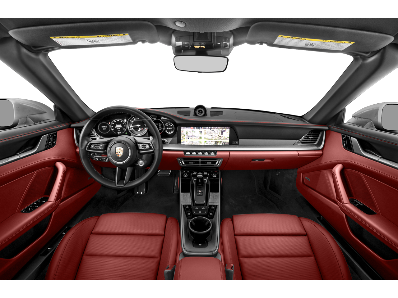 4-Way Sport Seats, 4-Wheel Disc Brakes, 8 Speakers, ABS brakes, Adaptive suspension, Air Conditioning, Alloy wheels, Apple CarPlay, Auto-dimming door mirrors, Auto-dimming Rear-View mirror, Automatic temperature control, Brake assist, Bumpers: body-color, Convertible roof lining, Convertible roof wind blocker, Delay-off headlights, Driver door bin, Driver vanity mirror, Dual front impact airbags, Dual front side impact airbags, Electronic Stability Control, Exterior Parking Camera Rear, Four wheel independent suspension, Front anti-roll bar, Front Bucket Seats, Front Center Armrest, Front dual zone A/C, Front reading lights, Fully automatic headlights, Garage door transmitter: HomeLink, Glass rear window, Heated door mirrors, Heated front seats, Illuminated entry, Integrated roll-over protection, Leather Seat Trim, Leather steering wheel, Low tire pressure warning, Navigation system: Porsche Communication Management (PCM), Occupant sensing airbag, Outside temperature display, Overhead airbag, Overhead console, Passenger door bin, Passenger vanity mirror, Porsche Communication Management, Power convertible roof, Power door mirrors, Power driver seat, Power passenger seat, Power steering, Power windows, Radio data system, Rain sensing wipers, Rear anti-roll bar, Rear fog lights, Rear window defroster, Remote keyless entry, Security system, Speed control, Split folding rear seat, Spoiler, Sport steering wheel, Steering wheel mounted audio controls, Tachometer, Telescoping steering wheel, Tilt steering wheel, Traction control, Trip computer, Variably intermittent wipers, and Wheels: 20 Front/21 Rear Carrera S.