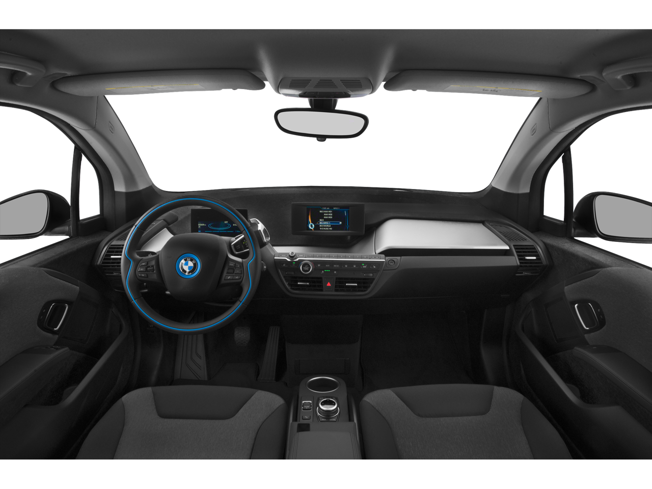 4 Speakers, 4-Wheel Disc Brakes, ABS brakes, Air Conditioning, Alloy wheels, Apple CarPlay Compatibility, Auto-dimming door mirrors, Auto-dimming Rear-View mirror, Automatic temperature control, Brake assist, Bumpers: body-color, Cloth Upholstery, Compass, ConnectedDrive Services, Delay-off headlights, Driver door bin, Driver vanity mirror, Dual front impact airbags, Dual front side impact airbags, Electronic Stability Control, Emergency communication system: BMW Assist eCall, Exterior Parking Camera Rear, Four wheel independent suspension, Front anti-roll bar, Front Bucket Seats, Front Center Armrest w/Storage, Front dual zone A/C, Front reading lights, Fully automatic headlights, HD Radio, Heat Pump, Heated door mirrors, Heated Front Seats, Heated front seats, Illuminated entry, Knee airbag, Leather steering wheel, Low tire pressure warning, Occupant sensing airbag, Outside temperature display, Overhead airbag, Panic alarm, Passenger door bin, Passenger vanity mirror, Power door mirrors, Power steering, Power windows, Radio data system, Radio: FM/HD, Rain sensing wipers, Rear window defroster, Rear window wiper, Remote keyless entry, Remote Services, Security system, SiriusXM Satellite Radio, Speed control, Speed-sensing steering, Speed-Sensitive Wipers, Split folding rear seat, Spoiler, Steering wheel mounted audio controls, Telescoping steering wheel, Tilt steering wheel, Traction control, Trip computer, Turn signal indicator mirrors, Variably intermittent wipers, and Wheels: 19 x 5.0 Front & 19 x 5.5 Rear BMW i.