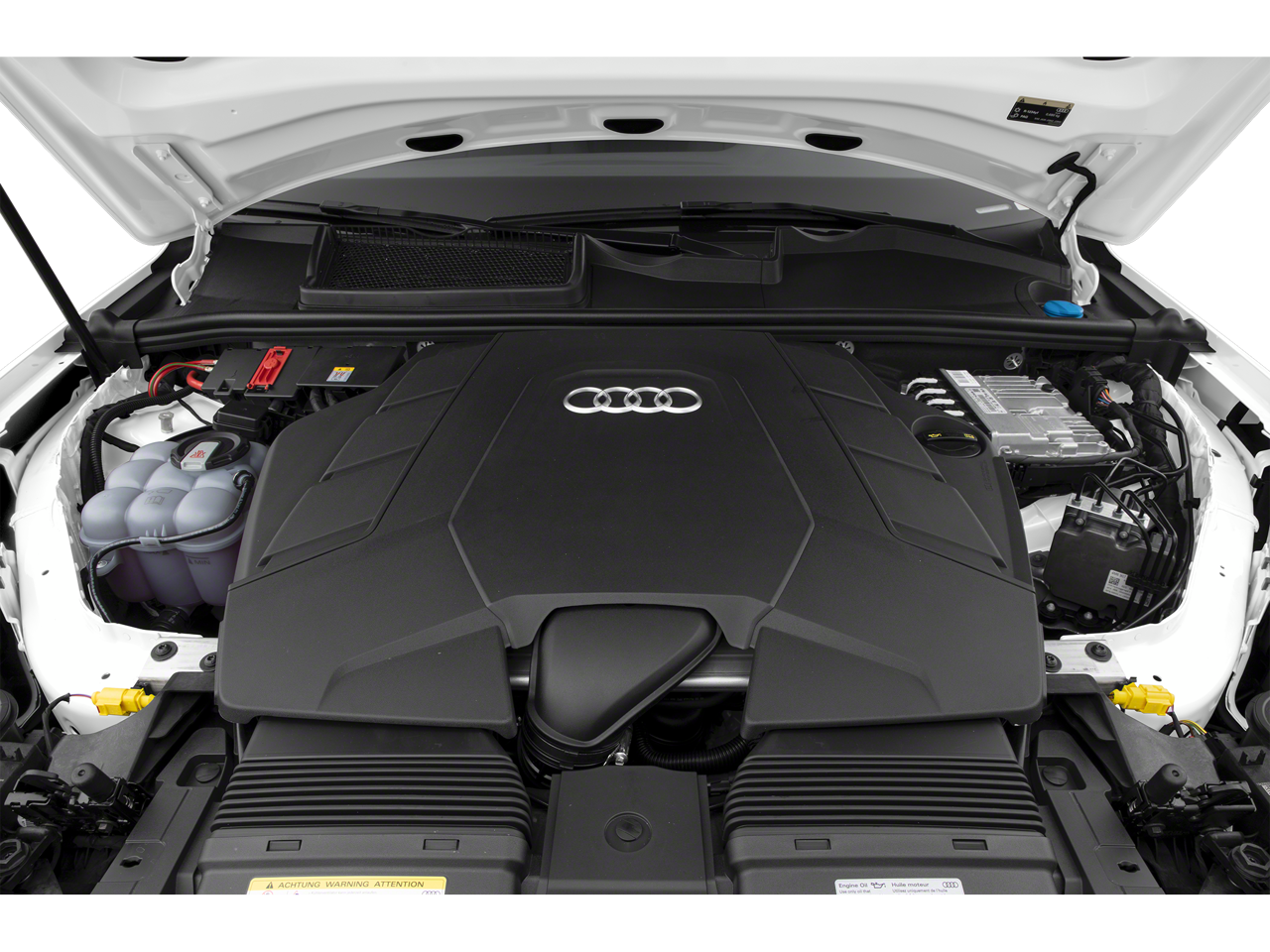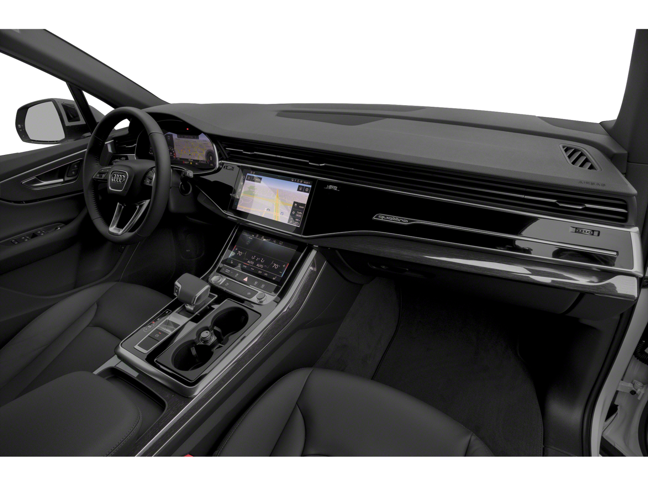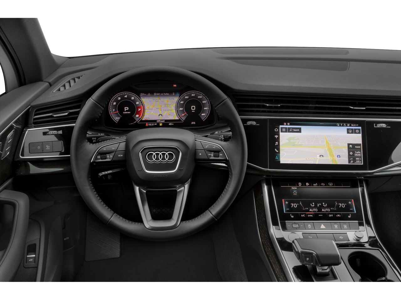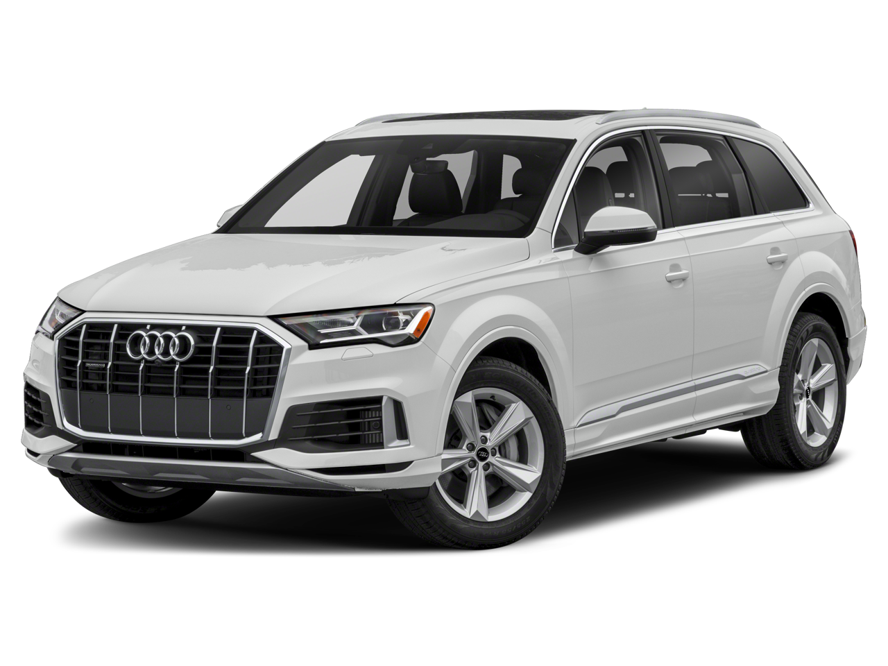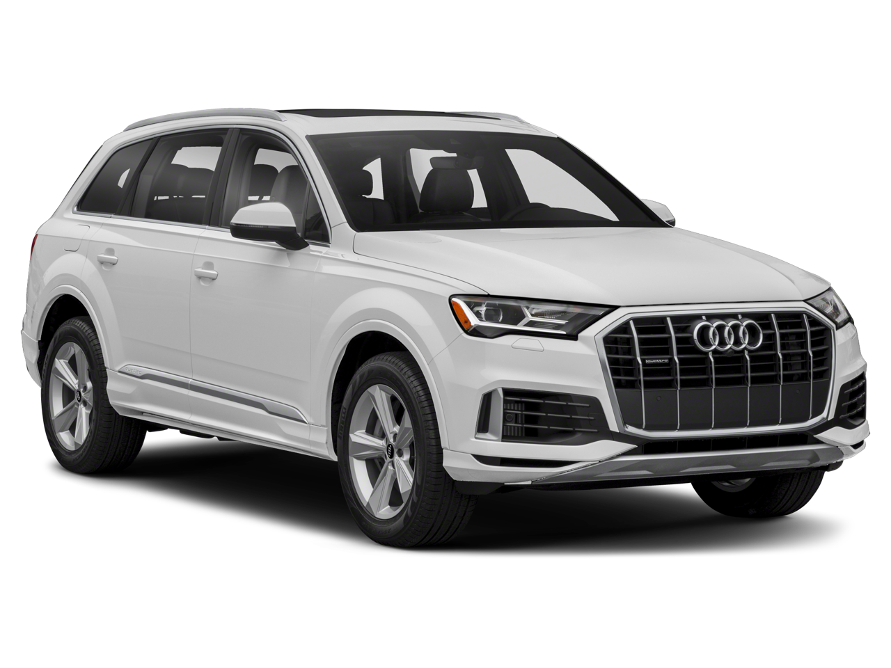 3.204 Axle Ratio, 3rd row seats: bench, 4-Wheel Disc Brakes, ABS brakes, Air Conditioning, Alloy wheels, AM/FM radio: SiriusXM, Audi smartphone interface (Apple CarPlay/Android Auto), Auto High-beam Headlights, Auto-dimming door mirrors, Auto-dimming Rear-View mirror, Automatic temperature control, Brake assist, Bumpers: body-color, Compass, Delay-off headlights, Driver door bin, Driver vanity mirror, Dual front impact airbags, Dual front side impact airbags, Electronic Stability Control, Emergency communication system: Audi connect CARE, PRIME & PLUS, Enhanced Premium Sound System, Exterior Parking Camera Rear, Four wheel independent suspension, Front anti-roll bar, Front Bucket Seats, Front Center Armrest, Front dual zone A/C, Front fog lights, Front reading lights, Fully automatic headlights, Garage door transmitter: HomeLink, Genuine wood door panel insert, Heated door mirrors, Heated Front Bucket Seats, Heated front seats, Illuminated entry, Leather Seating Surfaces, Leather Shift Knob, Leather steering wheel, Low tire pressure warning, Memory seat, Navigation system: Audi MMI Navigation plus with Touch Response, Occupant sensing airbag, Outside temperature display, Overhead airbag, Overhead console, Panic alarm, Passenger door bin, Passenger vanity mirror, Power door mirrors, Power driver seat, Power Liftgate, Power moonroof: Panoramic, Power passenger seat, Power steering, Power windows, Radio data system, Radio: Audi Sound System, Rain sensing wipers, Rear air conditioning, Rear anti-roll bar, Rear fog lights, Rear reading lights, Rear seat center armrest, Rear side impact airbag, Rear window defroster, Rear window wiper, Reclining 3rd row seat, Remote keyless entry, Roof rack: rails only, Security system, Speed control, Speed-sensing steering, Split folding rear seat, Spoiler, Steering wheel memory, Steering wheel mounted audio controls, Tachometer, Telescoping steering wheel, Tilt steering wheel, Traction control, Trip computer, Turn signal indicator mirrors, Variably intermittent wipers, and Wheels: 19 5-Arm-Star Design.