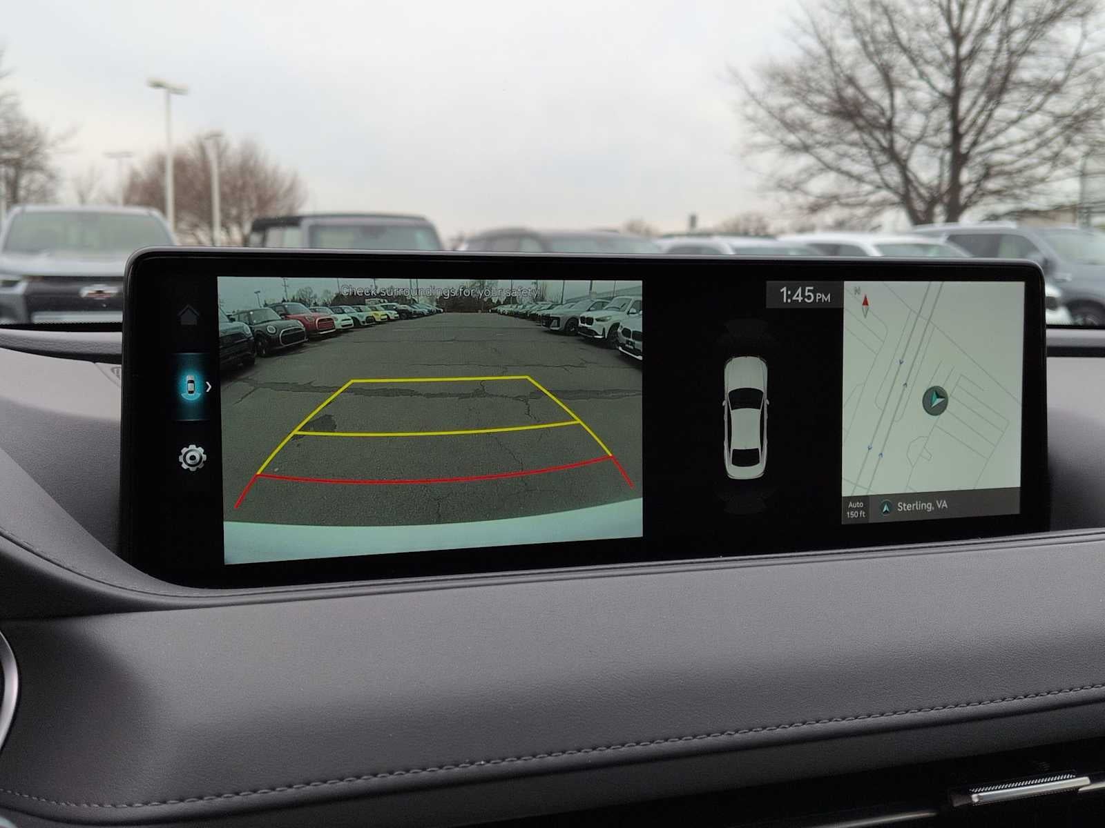 Advanced Package (3-Zone Climate, Leatherette Seating Surfaces, Matte Finish Wood Trim, Option Group 02, Panoramic Roof, Power Rear & Manual Rear Side Sunshades, Power Trunk, Radio: AM/FM/HD/SiriusXM Lexicon Audio System, Ventilated Front Seats, and Wheels: 19x8.5J Fr & 19x9.5J Rr Alloy), Advanced Package (DISC), Option Group 01, Android Auto & Apple CarPlay, Exterior Parking Camera Rear, Fully automatic headlights, Heated Front Bucket Seats, Heated front seats, Heated rear seats, Heated steering wheel, Leather steering wheel, Memory seat, Power passenger seat, Radio: AM/FM/HD/SiriusXM Audio System, Steering wheel memory, Steering wheel mounted audio controls, 12 Speakers, 4-Wheel Disc Brakes, ABS brakes, Air Conditioning, Alloy wheels, AM/FM radio: SiriusXM, Anti-whiplash front head restraints, Auto High-beam Headlights, Auto tilt-away steering wheel, Auto-dimming door mirrors, Auto-dimming Rear-View mirror, Automatic temperature control, Bumpers: body-color, Compass, Delay-off headlights, Driver door bin, Driver vanity mirror, Dual front impact airbags, Dual front side impact airbags, Electronic Stability Control, Emergency communication system: Genesis Connected Services, First Aid Kit, Four wheel independent suspension, Front anti-roll bar, Front Bucket Seats, Front Center Armrest, Front dual zone A/C, Front reading lights, Garage door transmitter: HomeLink, Heated door mirrors, Illuminated entry, Knee airbag, Low tire pressure warning, Navigation System, Occupant sensing airbag, Outside temperature display, Overhead airbag, Overhead console, Panic alarm, Passenger door bin, Passenger vanity mirror, Power door mirrors, Power driver seat, Power steering, Power windows, Radio data system, Rain sensing wipers, Rear anti-roll bar, Rear Bumper Applique, Rear reading lights, Rear seat center armrest, Rear side impact airbag, Rear window defroster, Remote keyless entry, Reversible Cargo Tray, Security system, Speed control, Speed-sensing steering, Speed-Sensitive Wipers, Tachometer, Telescoping steering wheel, Tilt steering wheel, Traction control, Trip computer, Turn signal indicator mirrors, Variably intermittent wipers, and Wheels: 18x8.0J Alloy.