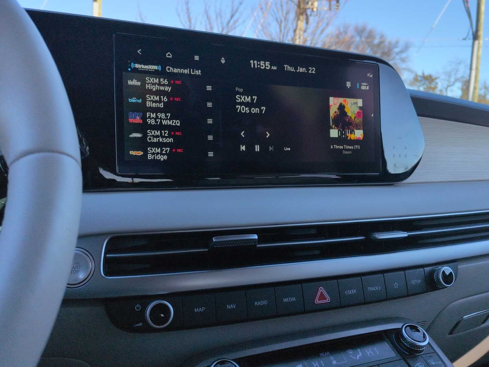 - Radio: AM/FM/MP3 Premium Audio System -inc: 630-Watts, 12.3" color touchscreen display, onboard navigation w/traffic flow including incident data via HD Radio (HERE), Over-the-Air (OTA) map updates, Harman Kardon audio system w/12-speakers, Quantum Logic Surround, Clari-Fi, SiriusXM, Android Auto and Apple CarPlay, USB, dynamic voice recognition, rear seat quiet mode, passenger talk (in-car intercom), Bluetooth® hands-free connectivity w/multiple device connection and Bluelink Connected Car System