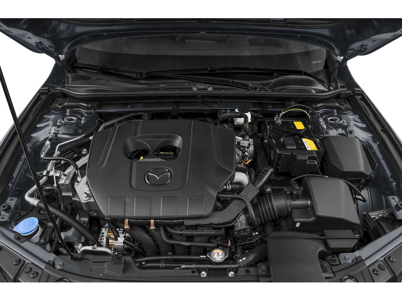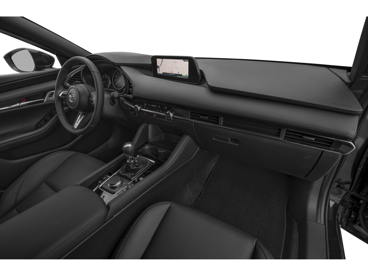 Appearance Package (Black Front Air Dam, Black Rear Bumper Skirt, Black Side Sill Extensions, Body Color Rear Hatch Spoiler, and Jet Black Door Mirror Caps), 12 Speakers, 4-Wheel Disc Brakes, ABS brakes, Air Conditioning, Alloy wheels, AM/FM radio: SiriusXM, AppLink/Apple CarPlay and Android Auto, Auto High-beam Headlights, Automatic temperature control, Brake assist, Bumpers: body-color, Compass, Delay-off headlights, Driver door bin, Driver vanity mirror, Dual front impact airbags, Dual front side impact airbags, Electronic Stability Control, Emergency communication system: Mazda Connected Services (1-year complimentary trial included), Exterior Parking Camera Rear, Front anti-roll bar, Front Bucket Seats, Front Center Armrest, Front dual zone A/C, Front reading lights, Front wheel independent suspension, Fully automatic headlights, Heads-Up Display, Heated door mirrors, Heated Front Bucket Seats, Heated front seats, Illuminated entry, Knee airbag, Leather Seat Trim, Leather Shift Knob, Leather steering wheel, Low tire pressure warning, MAZDA CONNECT Infotainment System, Memory seat, Navigation system: Mazda Online Navigation, Occupant sensing airbag, Outside temperature display, Overhead airbag, Overhead console, Panic alarm, Passenger door bin, Passenger vanity mirror, Power door mirrors, Power driver seat, Power moonroof, Power steering, Power windows, Radio data system, Radio: AM/FM/HD Audio System, Rain sensing wipers, Rear seat center armrest, Rear side impact airbag, Rear window defroster, Rear window wiper, Remote keyless entry, Speed control, Speed-sensing steering, Split folding rear seat, Spoiler, Steering wheel mounted audio controls, Tachometer, Telescoping steering wheel, Tilt steering wheel, Traction control, Trip computer, Turn signal indicator mirrors, Variably intermittent wipers, and Wheels: 18 x 7J Aluminum Alloy.